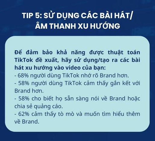 - Chọn nhạc hot: 68% người dùng TikTok có khả năng tương tác cao hơn với video sử dụng nhạc đang thịnh hành.