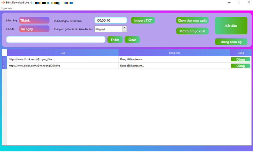 - Chỉ cần nhập link livestream, công cụ tự động ghi và lưu trữ.